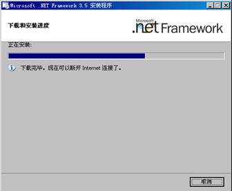 4. 進(jìn)度條運(yùn)行完后,表示Microsoft.NETFramework3.5已經(jīng)安裝成功