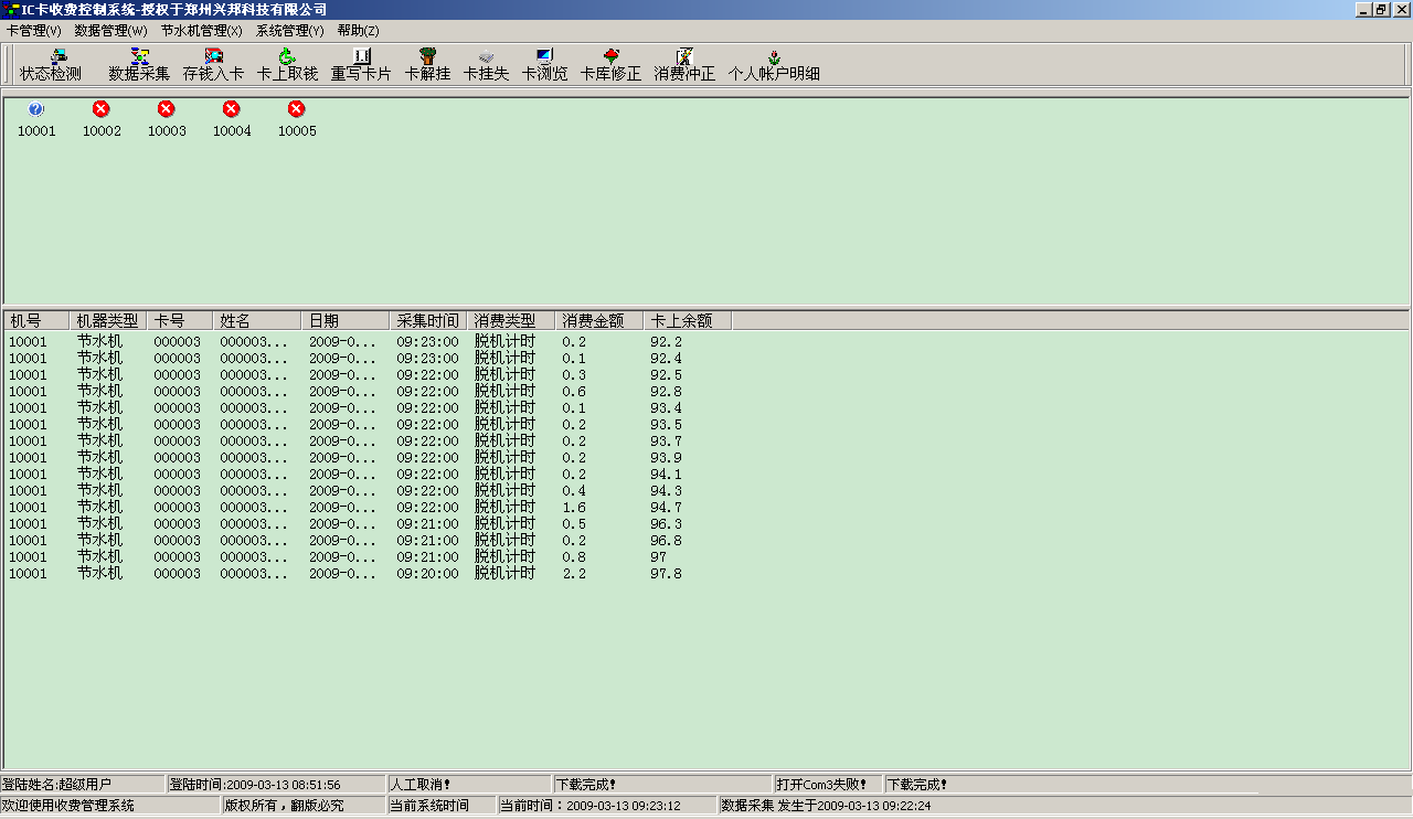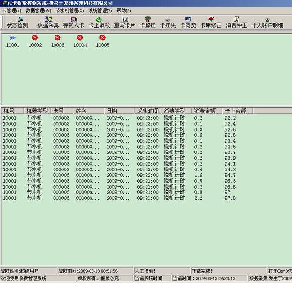 數據采集窗口用于查看數據的采集情況,在進行消費的時候,最好不要對水控機進行數據采集,我們不建議對機器進行邊操作邊進行數據采集。