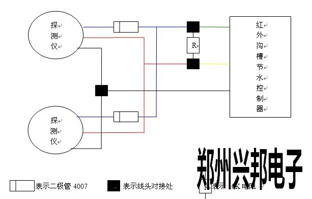 一臺(tái)紅外溝槽節(jié)水控制器連接兩個(gè)紅外探測(cè)儀線路修改說明