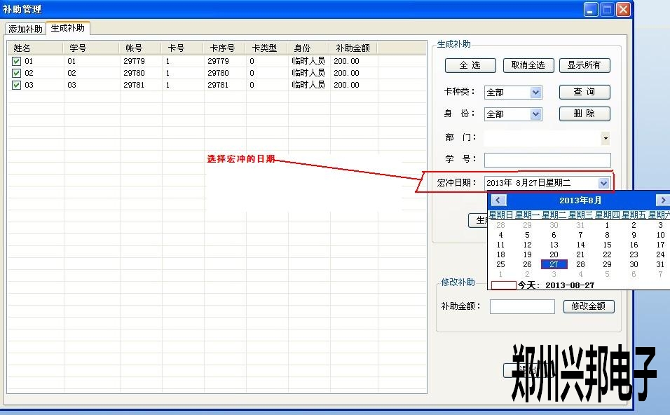 2.然后在生成補(bǔ)助時(shí),選擇宏沖的日期