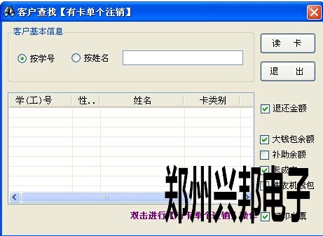 打開軟件 制卡中心-卡管理 在空白處鼠標(biāo)右擊,選擇有卡單個注銷或者無卡單個注銷,輸入學(xué)號或者姓名查詢出人員信息后,鼠標(biāo)雙擊查詢出的人員信息,即可完成注銷。