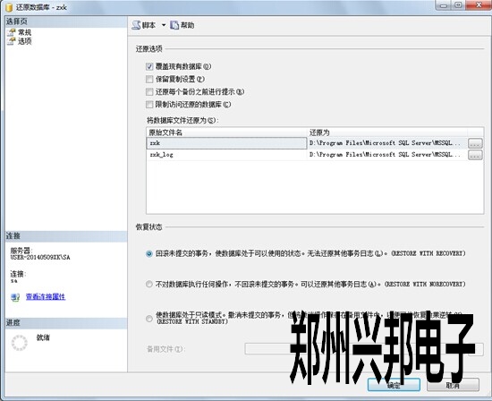 把導入的bak文件勾選上,在指定了要還原的*.bak文件以后,選項---->設置還原選項--->覆蓋現有數據庫(選上),其它默認。