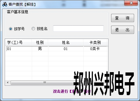 用戶使用卡片丟失需要在一卡通綜合管理平臺中對卡片進(jìn)行掛失,掛失操作可以保證不被別人使用,保證存款安全。對卡片掛失后必須聯(lián)機(jī)自動或手動下載全量名單到機(jī)器上,此卡在機(jī)器上使用時才會出現(xiàn)4-err錯誤,必須進(jìn)行解掛后才能使用。在卡管理中右鍵點(diǎn)擊掛失操作,會出現(xiàn)如下圖信息,輸入學(xué)號或者姓名點(diǎn)擊查詢,雙擊查詢到的信息,選擇掛失原因后點(diǎn)擊確定后就完成了對此卡的掛失操作