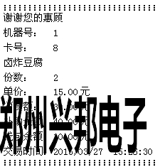 若連接的有打印機,消費后可直接進行打印,打印內容如下圖所示: