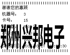② 計算模式:輸入扣費金額,按[確認]鍵后,將卡片放于刷卡區,即可進行扣費,若連接的有打印機,可直接打印消費明細,打印出的信息如下圖所示: