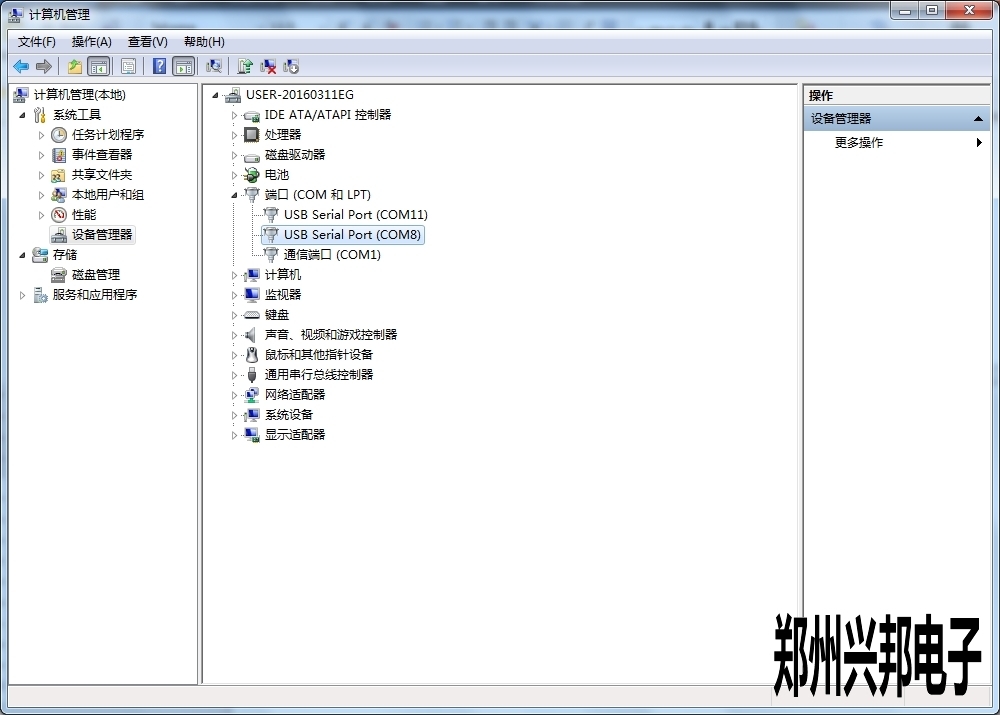 1、單擊計算機—單擊右鍵—管理—設(shè)備管理—端口。找到所用讀卡器端口。如下圖: