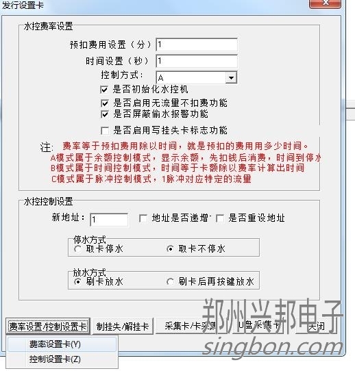 4、最后點(diǎn)擊“費(fèi)率設(shè)置/控制設(shè)置卡”按鈕,分別制一張費(fèi)率設(shè)置卡,控制設(shè)置卡。點(diǎn)擊確定完成就可以了。